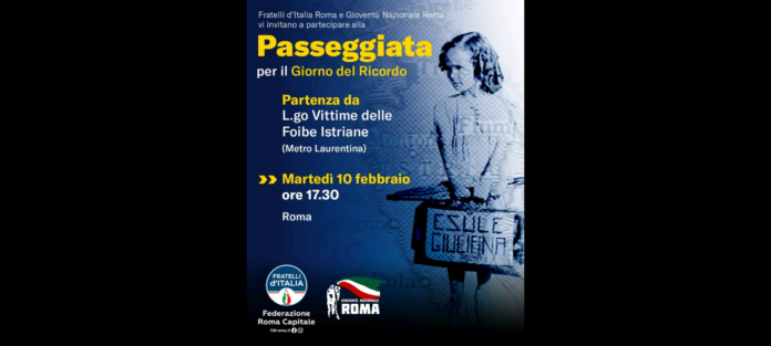 “Appuntamento: Largo Vittime delle Foibe Istriane – Metro Laurentina – Martedì 10 febbraio – Ore 17.30 – Roma”.