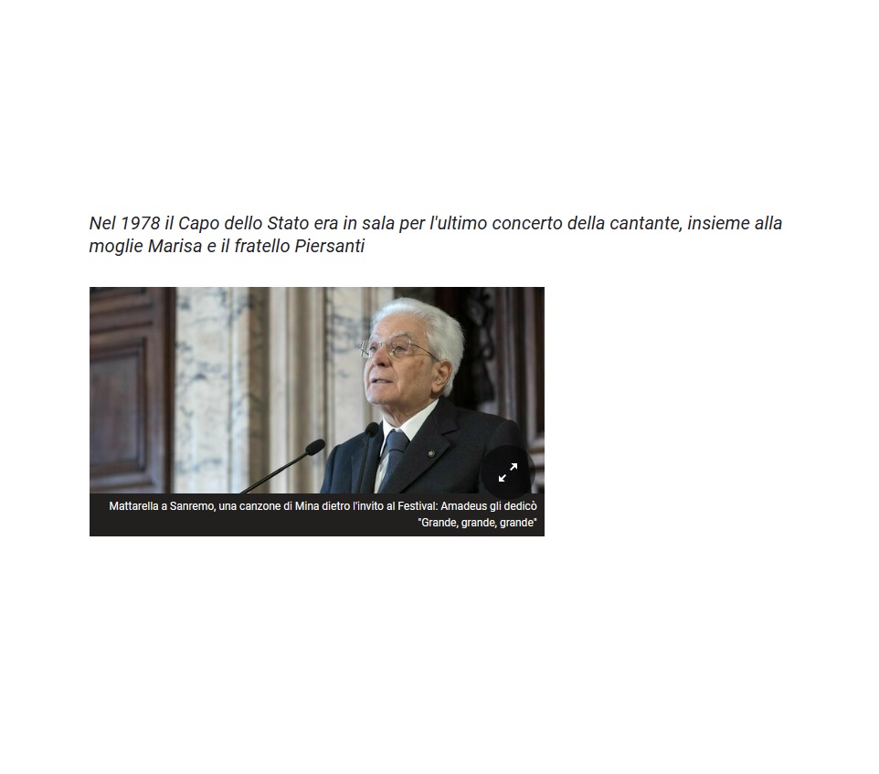 Allora l’occasione fu il ringraziamento del capo dello Stato per l’omaggio che gli era stato rivolto sulle note di “Grande, grande, grande”, in ricordo dell’ultimo concerto di Mina, nel 1978: quella sera in platea alla Bussola c’erano anche Mattarella, la moglie Marisa e il fratello Piersanti. Ma l’intervento di stasera – per ovvi motivi di riservatezza e di sicurezza – è rimasto segreto fino all’ultimo: anche stamattina nella bacheca degli autori non ce n’era traccia e perfino Morandi sarebbe stato informato solo nelle ultime ore.