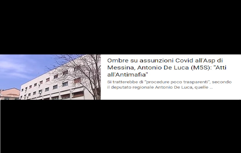 “Per le assunzioni di psicologi e psicoterapeuti all’Asp di Messina per l’emergenza Covid sarebbero state seguite procedure che appaiono poco trasparenti e difformi da quanto richiesto dall’assessorato regionale della Sanità. È una vicenda nella quale è doveroso fare piena luce, nell’interesse della collettività che rappresento. Per questo ho chiesto la trasmissione degli atti alla commissione regionale Antimafia”. Lo afferma il deputato 5 stelle, componente della commissione Antimafia di palazzo dei Normanni, Antonio De Luca.