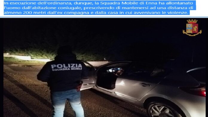La vittima nella citata occasione, al culmine dell’ennesima lite, è stata scaraventata a terra dall’ex compagno, colpita con calci alla schiena e al fianco destro, fino a riportare la frattura di una costola. In esecuzione dell’ordinanza, dunque, la Squadra Mobile di Enna ha allontanato l’uomo dall’abitazione coniugale, prescrivendo di mantenersi ad una distanza di almeno 200 metri dall’ex compagna e dalla casa in cui avvenivano le violenze.