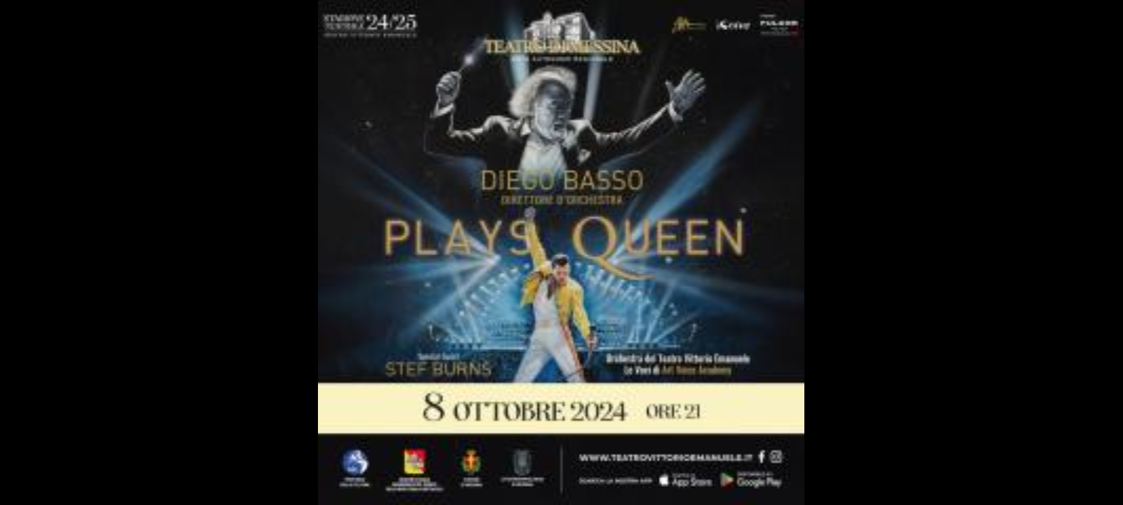 Non un semplice tributo, dunque, ma un riarrangiamento completo in versione sinfonica, da parte del Maestro Basso (la cui collaborazione con Brian May è ultraventennale, ormai), dei brani più noti dei Queen, che ha ottenuto grandissimo successo sui palcoscenici dei maggiori Teatri del panorama nazionale. Special guest star il celebre chitarrista Stef Burns (partner di Vasco Rossi, Alice Cooper e di tante altre straordinarie rockstar internazionali), virtuoso inarrivabile e dallo stile unico.