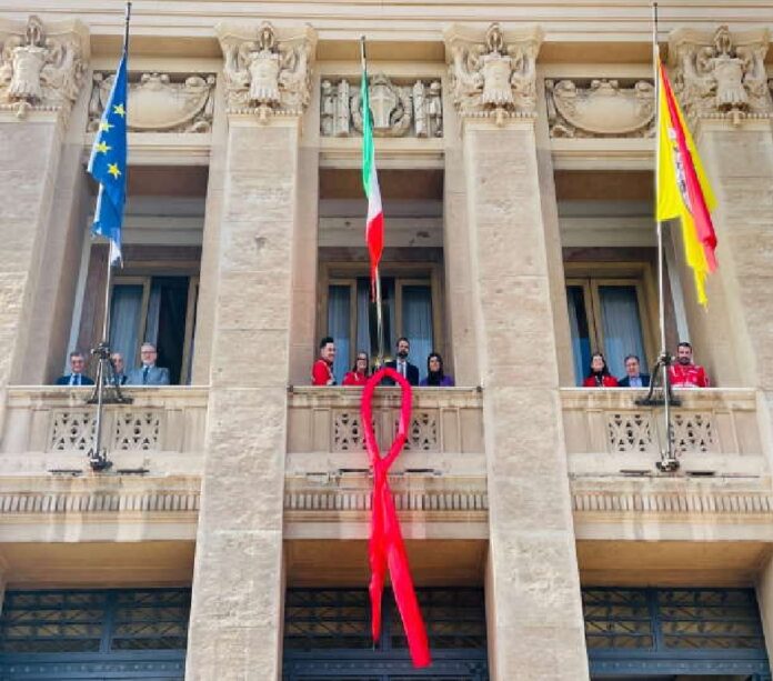Presente il Sindaco Federico Basile, in occasione della Giornata mondiale della lotta contro l’AIDS, è stato esposto stamani nella balconata di Palazzo Zanca il fiocco rosso simbolo della lotta all’AIDS col Palazzo illuminato di rosso.