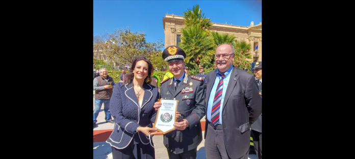 “Nell’occasione consegnato il gagliardetto A.N.I.O.M.R.I.D. (Associazione Nazionale Insigniti dell’Ordine al Merito della Repubblica italiana e Decorati), al Comandante Interregionale Carabinieri ‘Culqualber’ Generale di Corpo D’Armata Claudio Domizi”.