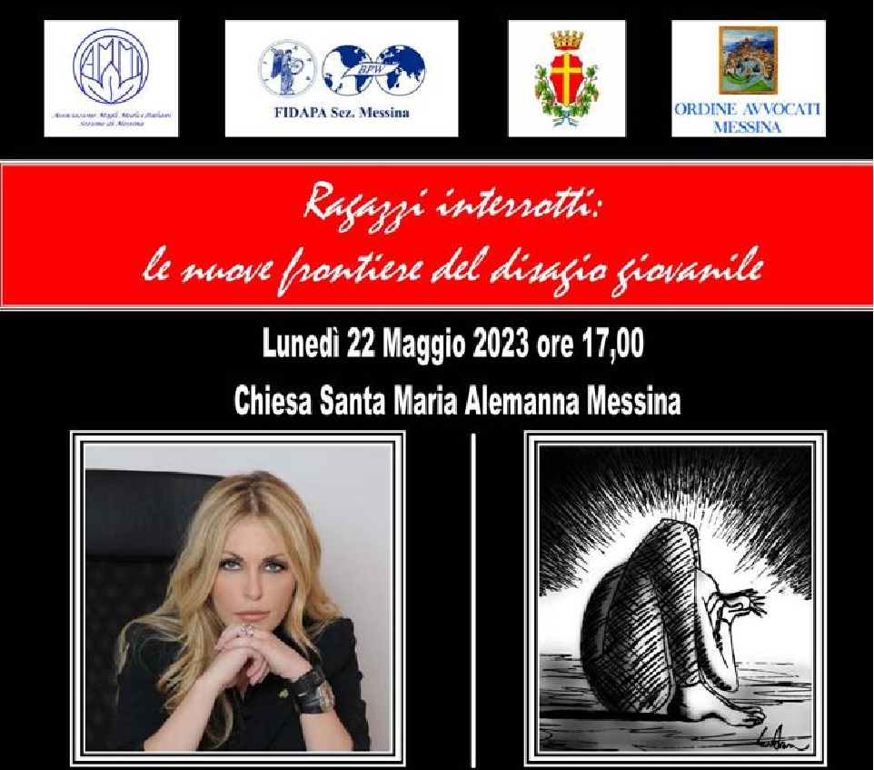 Presenti il sindaco Federico Basile e l’assessore alle Politiche sociali Alessandra Calafiore, oggi, lunedì 22, alle ore 17, a Santa Maria Alemanna, patrocinato dal Comune di Messina, si svolgerà il convegno dal titolo “Ragazzi interrotti: le nuove frontiere del disagio giovanile”.