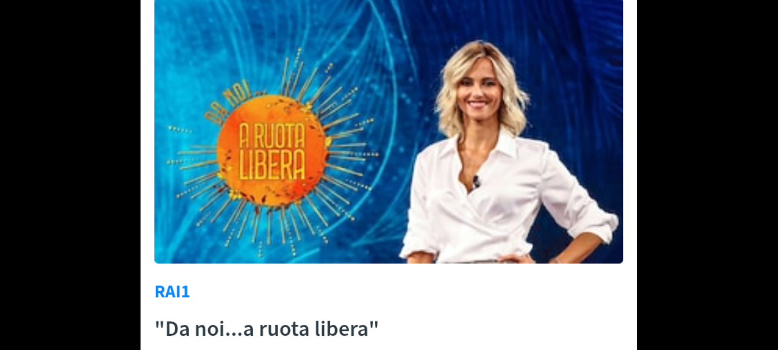 “Da noi… a ruota libera” è un programma di Cristiana Mastropietro, Vincenzo Faccioli Pintozzi, Francesca Fialdini, Ernesto Marra, Elena Martelli, Luciana Matarese, con la regia di Elisabetta Pierelli. Produttore esecutivo Rai, Monica Gallella. Produttore esecutivo Endemol Shine Italy, Laura Mantelli.