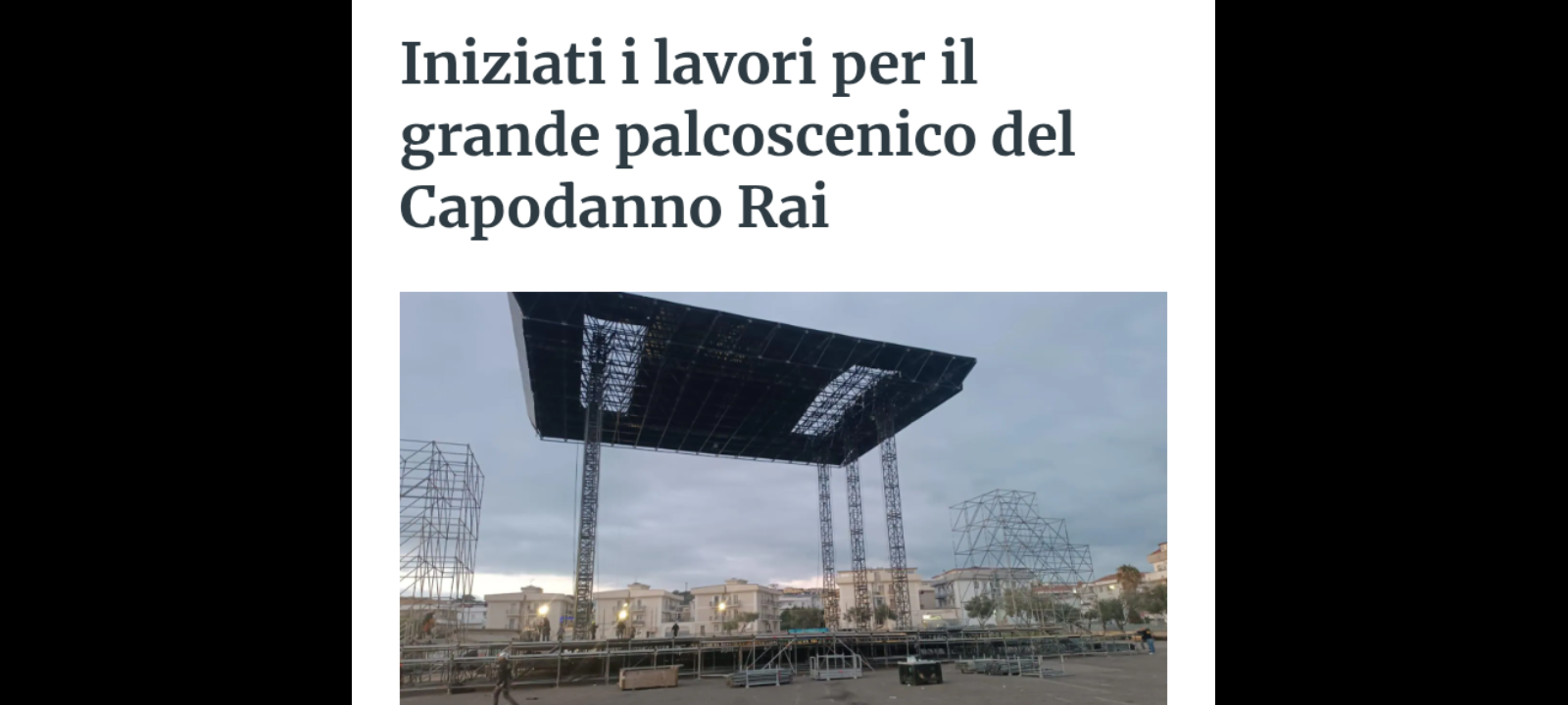 Primo assaggio di Capodanno a Catanzaro: da alcuni giorni sono arrivate nel capoluogo calabro le maestranze Rai per iniziare la costruzione dell’imponente palcoscenico che ospiterà “L’Anno che verrà”, condotto anche quest’anno da Marco Liorni, accompagnato da tanti artisti.