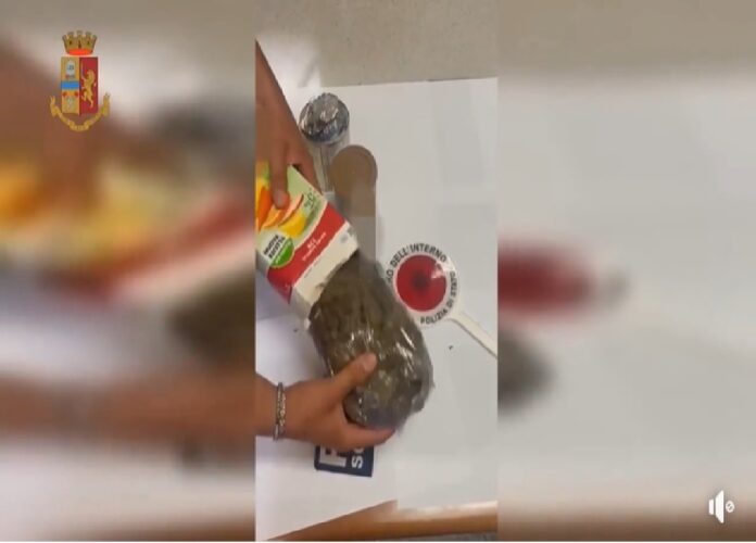 Nel pieno centro cittadino un equipaggio della Squadra Mobile notava una autovettura stazionare a bordo strada e tenere un comportamento sospetto, pertanto procedeva al controllo del conducente che risultava sprovvisto di regolare patente di guida, oltre ad essere stato già in passato colto alla guida in assenza della licenza. Per tale ragione l’uomo sarà poi sanzionato ai sensi del c.d.s. e applicato il fermo amministrativo del veicolo stesso. Insospettiti anche dal comportamento dell’uomo, agitato alla vista dei poliziotti, veniva approfondito il controllo effettuando una perquisizione del veicolo e l’attenzione degli investigatori veniva attirata da un cartone di succo di frutta e di altri alimenti poggiati sul sedile posteriore della vettura.