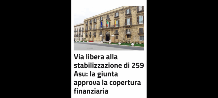 Prosegue il percorso di stabilizzazione del personale Asu! La giunta regionale ha approvato uno stanziamento di oltre 22 milioni di euro che garantirà a 259 lavoratori, in servizio presso i dipartimenti dei Beni culturali, Tecnico e Infrastrutture di essere assunti presso la Servizi ausiliari Sicilia, società partecipata dalla Regione.