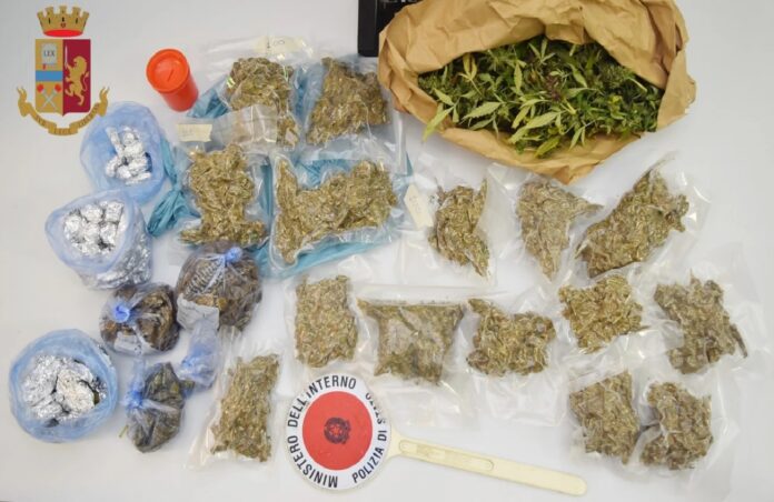 Tuttavia gli operatori di squadra mobile e volanti, avendo il sospetto che l’uomo stesse tentando di sviarli, sottoponevano a controllo anche le aree limitrofe all’abitazione, individuando un locale attiguo adibito a deposito di attrezzi poi rivelatisi in uso al trentottenne, nonché utilizzato come garage per una biciletta elettrica di proprietà dello stesso. Insospettiti dall’odore proveniente dal capanno, i poliziotti vi accedevano e lo sottoponevano a scrupolosa perquisizione, rinvenendo e sequestrando alcuni rami colmi di fogliame ed infiorescenze tipiche delle piante di cannabis, nonché numerosi involucri contenenti sostanza stupefacente del tipo marijuana, tutti verosimilmente destinati allo smercio nel marcato cittadino.