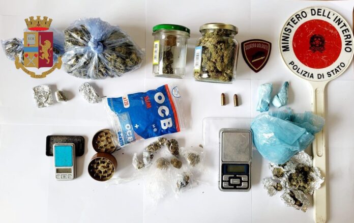 Con la droga, in questo caso, anche due proiettili calibro 7,65. Rinvenuto e sequestrato altresì materiale per la pesatura e il confezionamento delle singole dosi generalmente utilizzato per l’attività di spaccio.