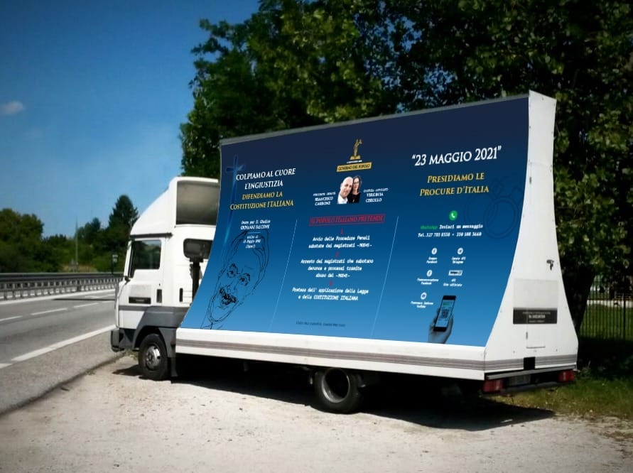 Carbone ha aggiunto: “coloro che vogliono partecipare attivamente all’organizzazione della Protesta Permanente dinanzi tutte le Procure d’Italia 23 Maggio 2021, possono inviarmi un messaggio WhatsApp ai numeri 3277858538 3501083660 indicando Nome, Cognome, Regione, Provincia e saranno inseriti nei gruppi operativi regionali e provinciali così da organizzarvi con tutti gli altri con il volantinaggio e tutte le attività necessarie per organizzare nel miglior modo possibile la Protesta Permanente dinanzi tutte le Procure d’Italia”.