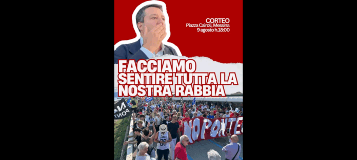 “Quel bacio sprezzante indirizzato da Salvini ai manifestanti giunti a contestarlo ha il carattere del paternalismo coloniale di chi disprezza le comunità locali”. Lo hanno scritto nelle ore scorse, sulla loro omonima Pagina Facebook… ‘No Ponte’ i responsabili di questo Spazio presente sul famoso Social Network… per annunciare la odierna manifestazione prevista alle 18.00 a Piazza Cairoli… per contestare la costruzione del ‘Ponte sullo Stretto’.