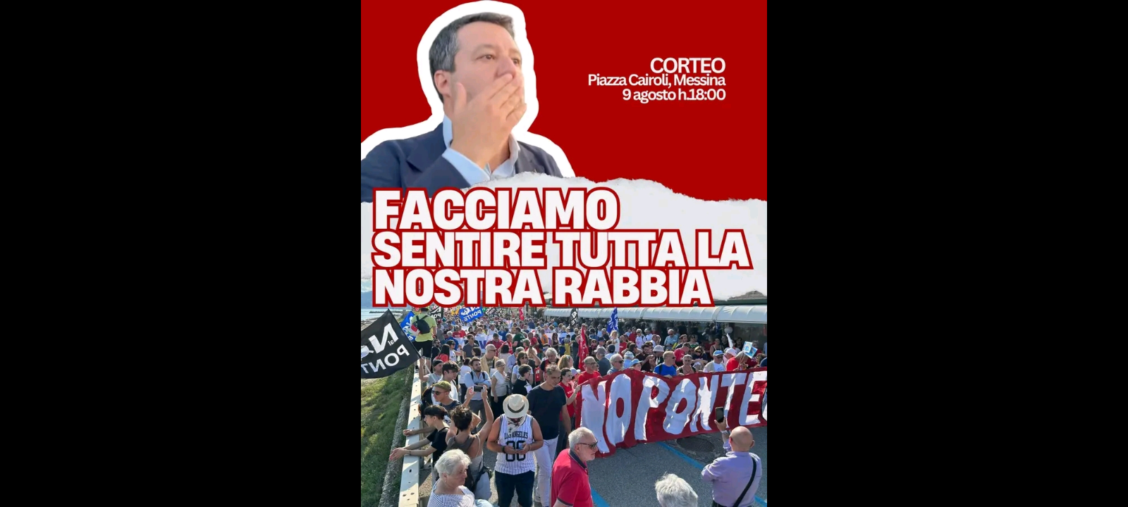 - “Le adesioni, intanto, si moltiplicano e nell’area dello Stretto si avverte la sensazione di essere alla viglia di un grande evento. Vediamoci il 9 agosto a Piazza Cairoli alle 18.00… facciamo sentire tutta la nostra indignazione. Facciamo sentire tutta la nostra rabbia”.
