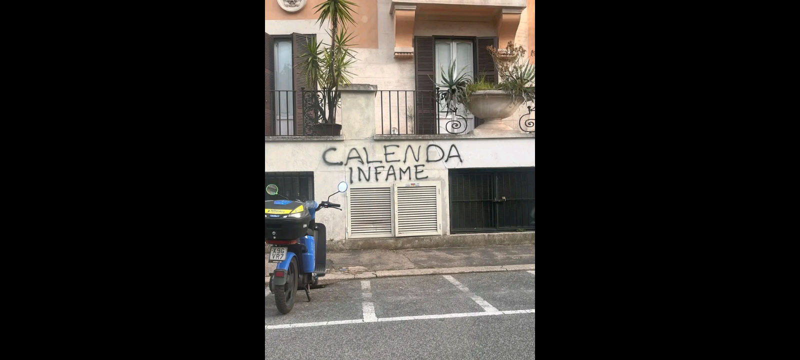 “Questa scritta è comparsa davanti all’ingresso della scuola di mio figlio”. Lo ha reso noto oggi, sulla sua omonima Pagina Facebook, Carlo Calenda, leader del ‘Partito’ ‘Azione’ e senatore di ‘Palazzo Madama’ a Roma.