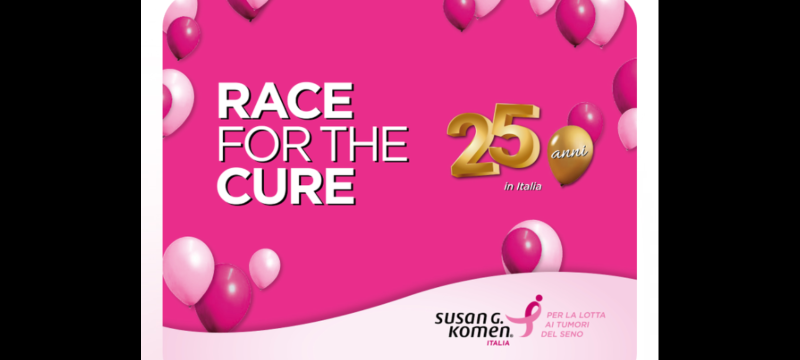 RACE FOR THE CURE è l’evento simbolo della Komen Italia e la più grande manifestazione per la lotta ai tumori del seno in Italia e nel mondo: si svolge sotto l’Alto Patronato del Presidente della Repubblica, a Roma, al Circo Massimo, e in altre 4 città italiane… Bari, Bologna, Brescia, Matera, e Napoli. È un evento di sport, salute e solidarietà aperto a tutti.