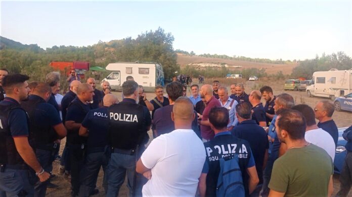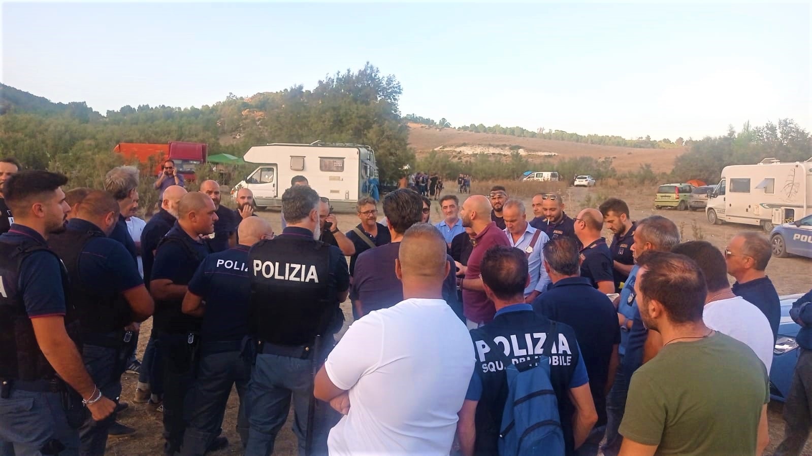 Oltre a pattuglie e numerosi militari dell’Arma dei Carabinieri, pattuglie della Guardia di Finanza, unità dell’Ispettorato Ripartimentale delle Foreste e personale e dei Vigili del Fuoco, per garantire le fasi delle operazioni di identificazione e sgombero.