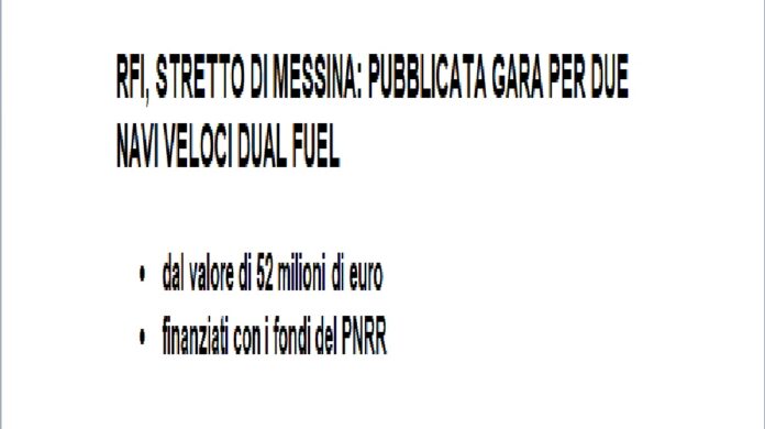 Rete Ferroviaria Italiana (Gruppo FS Italiane) ha pubblicato sulla Gazzetta ufficiale dell’Unione europea (GUUE) la gara per la fornitura di due navi veloci dual fuel per lo stretto di Messina, per offrire servizi di traghettamento sempre più green