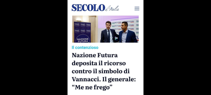 “Ricorso Nazione Futura: Giubilei è prolisso, io rispondo molto più succintamente al suo ricorso… menefrego”! Lo ha riferito ieri, in un Post pubblicato sulla sua omonima Pagina Facebook ‘Roberto Vannacci’, il generale dell’esercito in pensione, nonché Eurodeputato e vicesegretario della Lega.