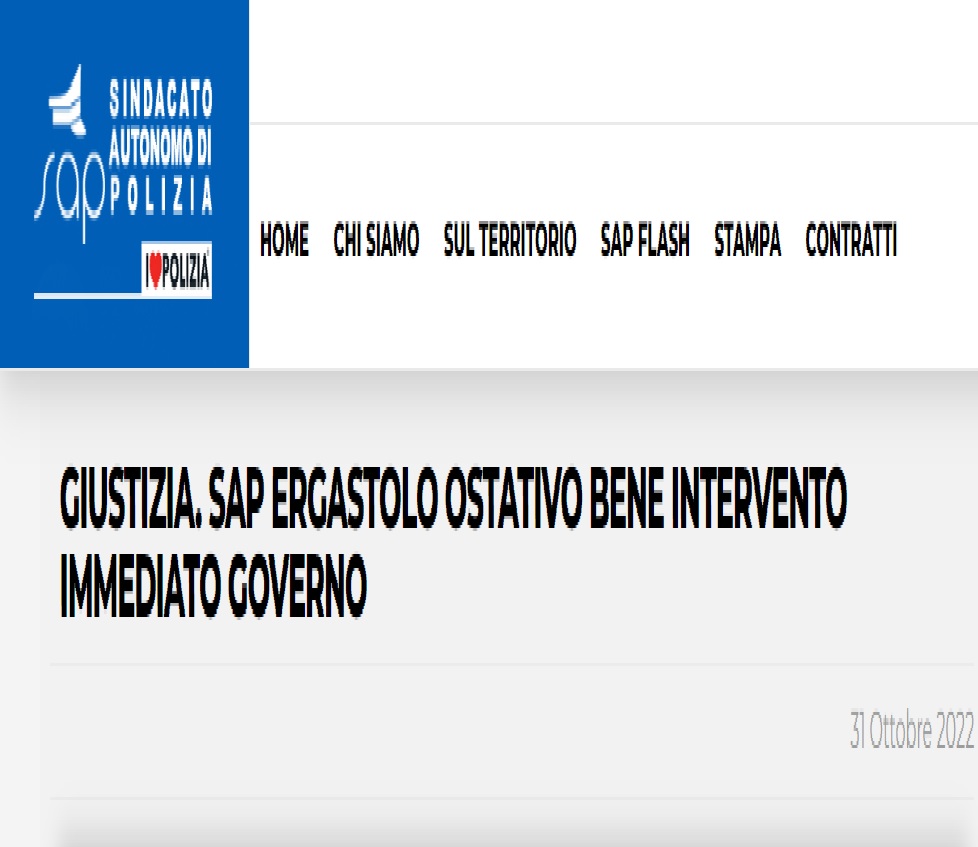 “Riguardo alla questione legata all’ergastolo ostativo piu’ volte posta in evidenza dal Sap e dalla necessita’ di intervenire si apprende che oggi il Consiglio dei ministri si occupera’ di questa importante tematica”. Cosi’ in una nota il Sindacato autonomo di Polizia.