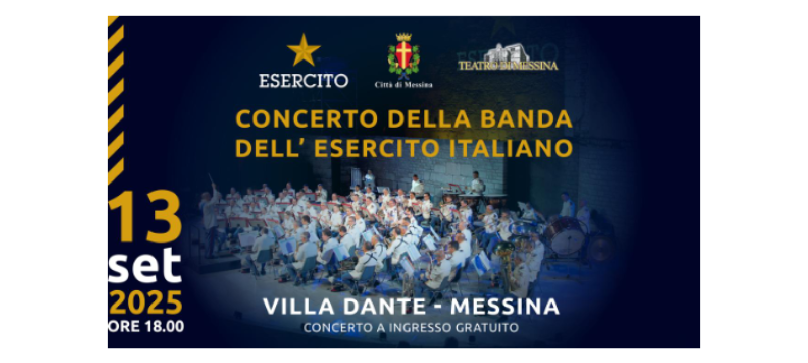 “Messina ha il privilegio di ospitare un’eccellenza musicale come la Banda dell’Esercito, un complesso che porta con sé storia, talento e prestigio. La nostra città – ha dichiarato il Sindaco Federico Basile – si apre ancora una volta all’arte e alla cultura, con un evento gratuito e accessibile a tutti, in uno degli spazi più significativi come Villa Dante”.