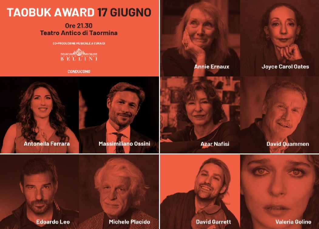 A ricevere i Taobuk Award per la Letteratura saranno tre figure femminili, distanti nell’itinerario umano e artistico eppure affini nell’impegno per la piena emancipazione della donna: Annie Ernaux, che ha firmato capolavori come Gli anni, L’evento, Il ragazzo, e già pluripremiata prima del Nobel 2022; Azar Nafisi, suoi i bestseller Leggere Lolita a Teheran, Le cose che non ho detto, La Repubblica dell’Immaginazione; Joyce Carol Oates, autrice di Figli randagi, Bestie, La femmina della specie, Blonde. Il Taobuk Award per la Scienza è assegnato a David Quammen che ha anticipato lo scenario del Covid in Spillover già nel 2012.