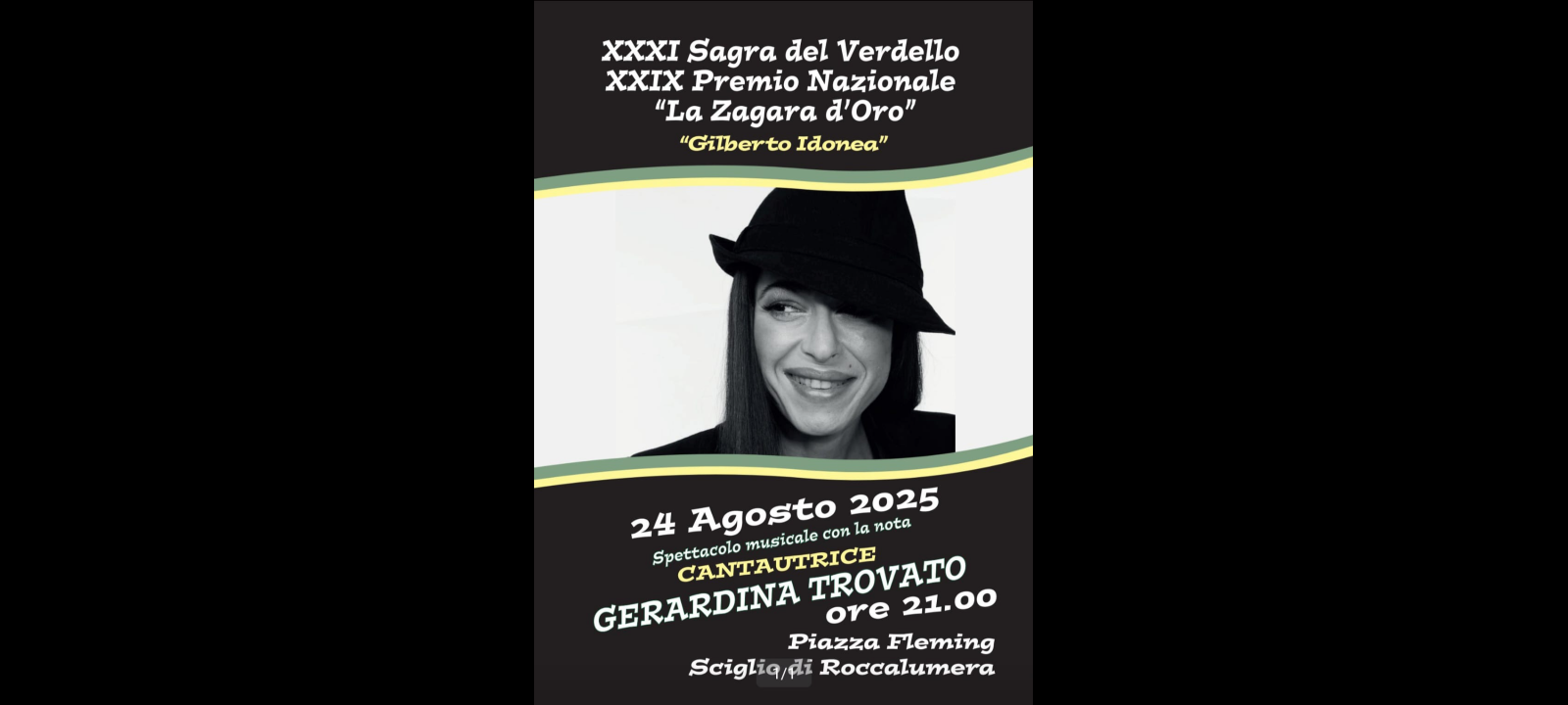 Sabato 23 agosto e Domenica 24 agosto con inizio alle ore 20:00, nella frazione di Sciglio si svolgerà la XXXI^ “Sagra del Verdello – e il 29° Premio Nazionale “La Zagara D’Oro” – Gilberto Idonea, organizzati dai responsabili del Circolo “Salvatore Quasimodo” presieduto da Pippo Giorgianni, con il patrocinio dell’Assessorato Regionale del Turismo Sport e Spettacolo e del Comune di Roccalumera.