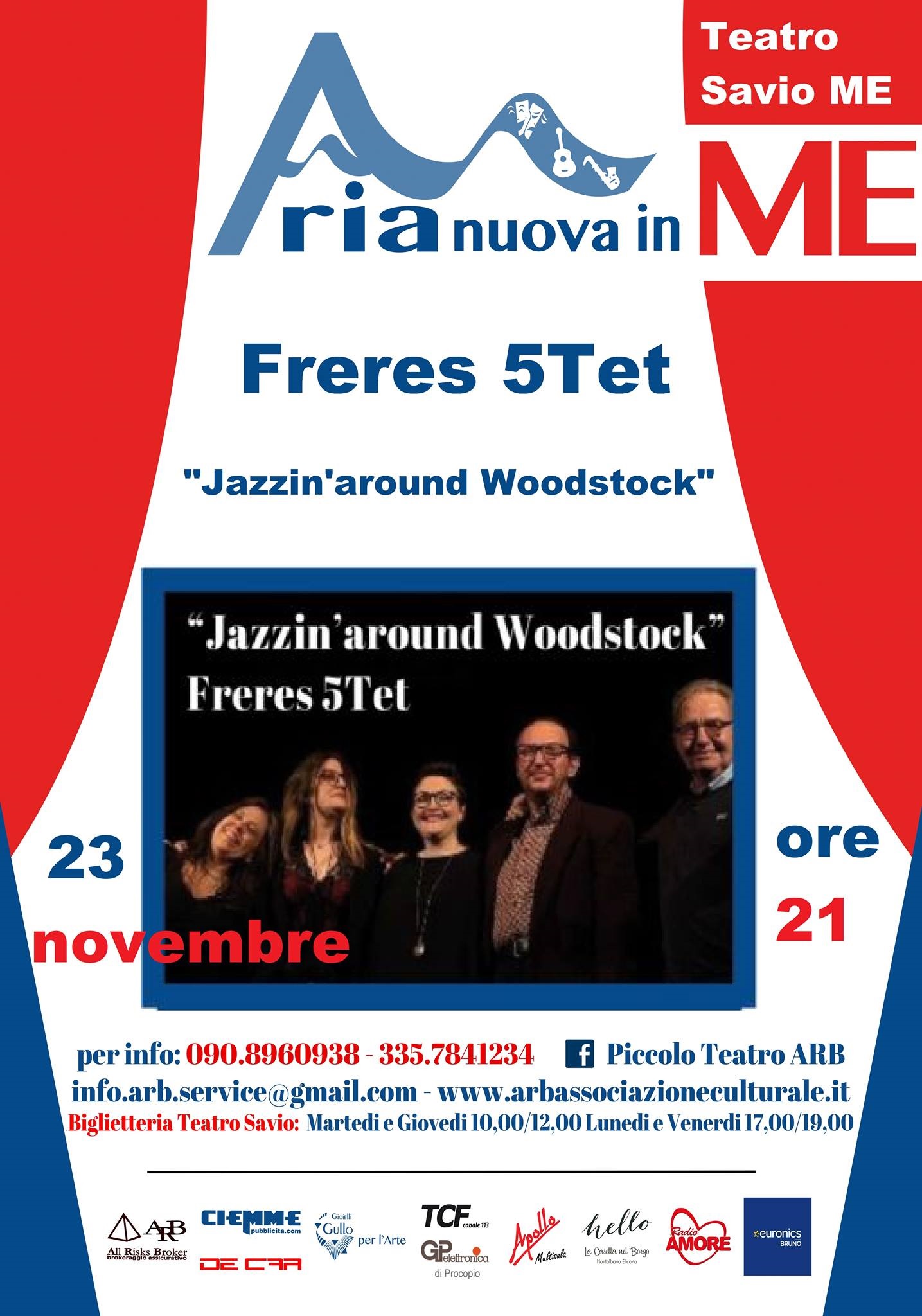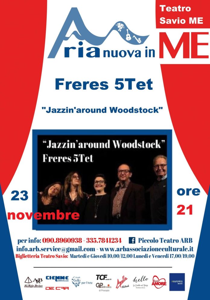 Il concerto “Jazzin’around Woodostok” vuole essere un omaggio ai più famosi brani dell’epoca, reinterpretati e rivistati dai Freres 5Tet con la solita eleganza e maestria. Gli artisti particolarmente sensibili alle tematiche di inclusione sociale, intendono devolvere parte dell’incasso della serata ai progetti attivati dall’associazione culturale ARB, affinchè la cultura possa essere fruibile anche ai soggetti più svantaggiati.