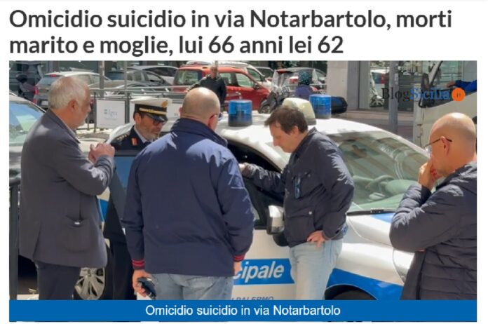 Sabato mattina drammatico nel centro residenziale della città di Palermo: marito e moglie sono stati trovati morti in casa nel loro appartamento in via Notarbartolo a pochi passi dall’albero Falcone e dalla stazione ferroviaria Notarbartolo… sono stati i pompieri, aprendo la porta dopo una segnalazione da parte della figlia della coppia, a trovare i corpi dei due coniugi morti… poco dopo i sanitari del 118 hanno constatato e confermato la morte dei due. Sarebbero morti a causa di alcuni colpi d’arma da fuoco. Non ci sarebbero segni di effrazione nell’appartamento ed è questo che fa ipotizzare l’omicidio suicidio. Al momento sul posto ci sono i carabinieri che stanno eseguendo i rilievi.