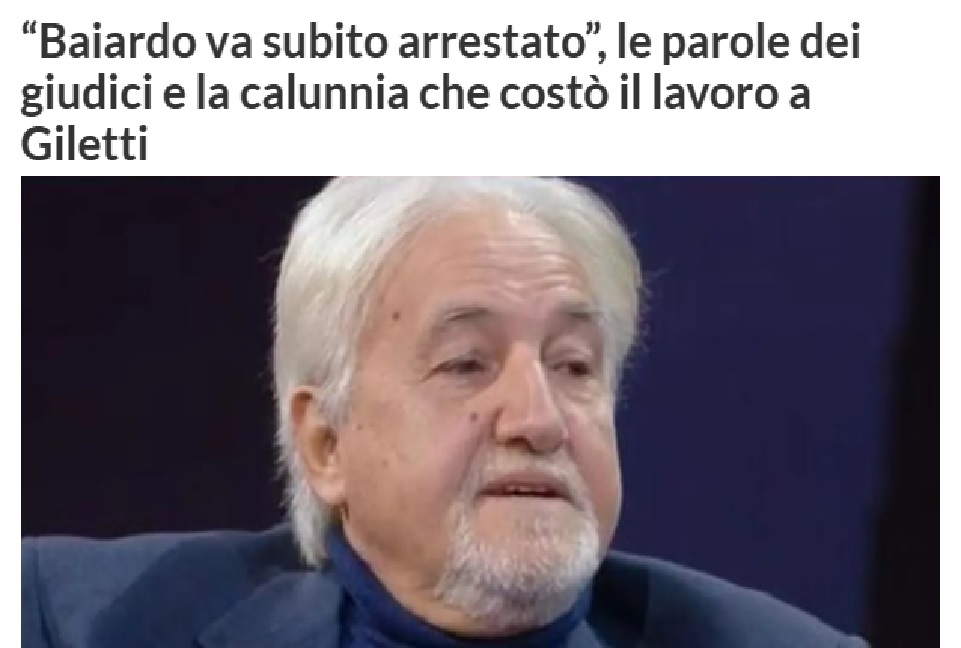 A disporre la misura è il tribunale del Riesame di Firenze, che ha accolto la richiesta della procura: l’ipotesi di reato è di calunnia nei confronti del giornalista Massimo Giletti e del sindaco di Cerasa Giancarlo Ricca e riguarda il caso della presunta foto (di cui finora non ci sarebbe prova) che ritrarrebbe insieme Giuseppe Graviano, Silvio Berlusconi e il generale dei carabinieri Francesco Delfino… del controverso scatto Baiardo aveva parlato all’allora conduttore della trasmissione Non è l’Arena, per poi smentire la circostanza davanti ai pm!