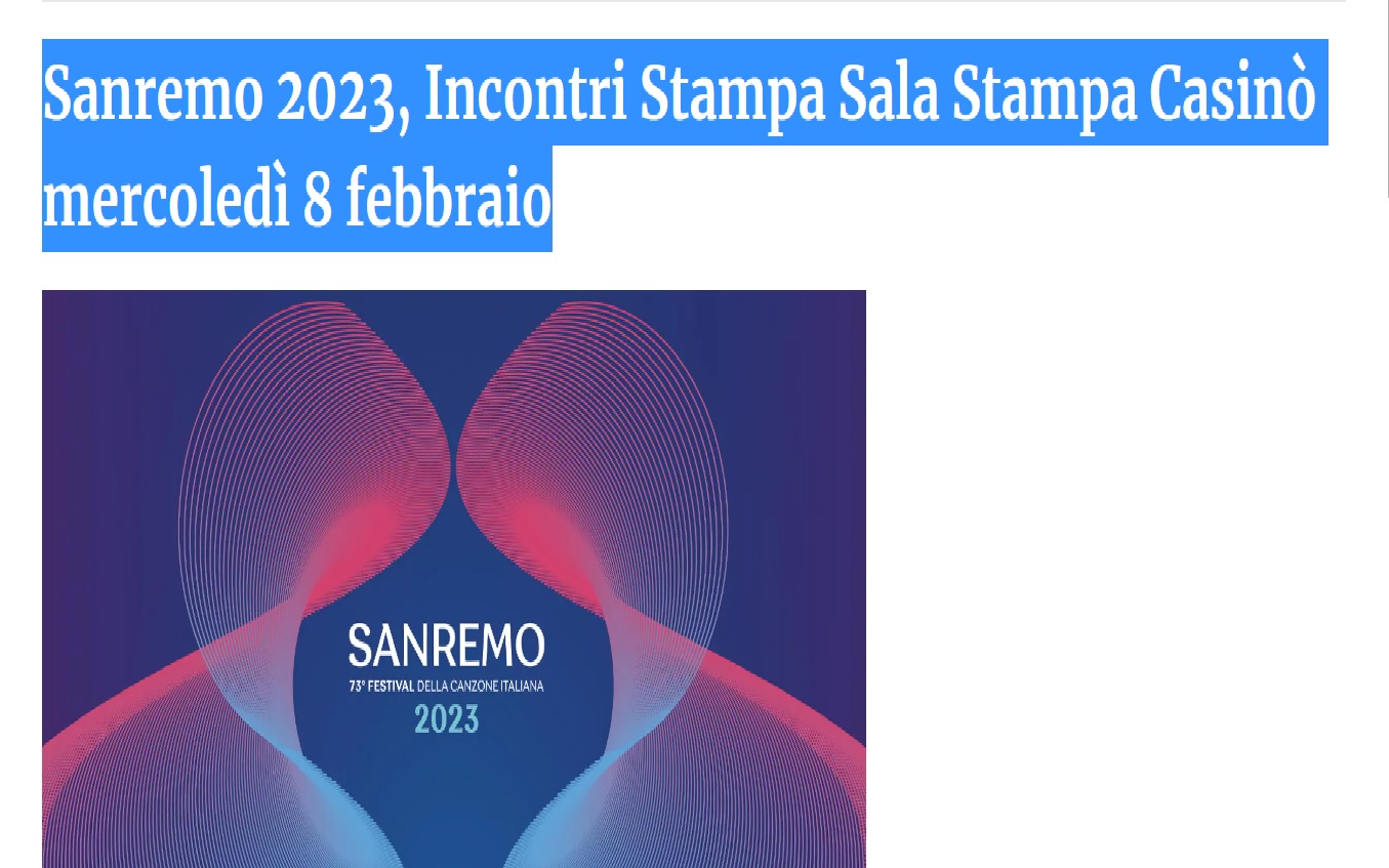Sanremo 2023: gli incontri…, in Sala Stampa di oggi, mercoledì 8 febbraio… previsti presso la Stampa Casinò.