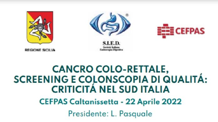 Sarà il CEFPAS ad ospitare il congresso sul tema “Cancro colo-rettale, screening e colonscopia di qualità: criticità nel Sud Italia” che si svolgerà a Caltanissetta venerdì 22 aprile in tre sessioni. L’evento – che richiamerà centinaia di specialisti – è organizzato dalla SIED (Società Italiana Endoscopia Digestiva) e dal CEFPAS in collaborazione con l’Assessorato regionale della Salute e il patrocinio della SIGE (Società Italiana di Gastroenterologia ed Endoscopia Digestiva) e dell’AIGO (Associazione Italiana Gastroenterologi & Endoscopisti Digestivi Ospedalieri).