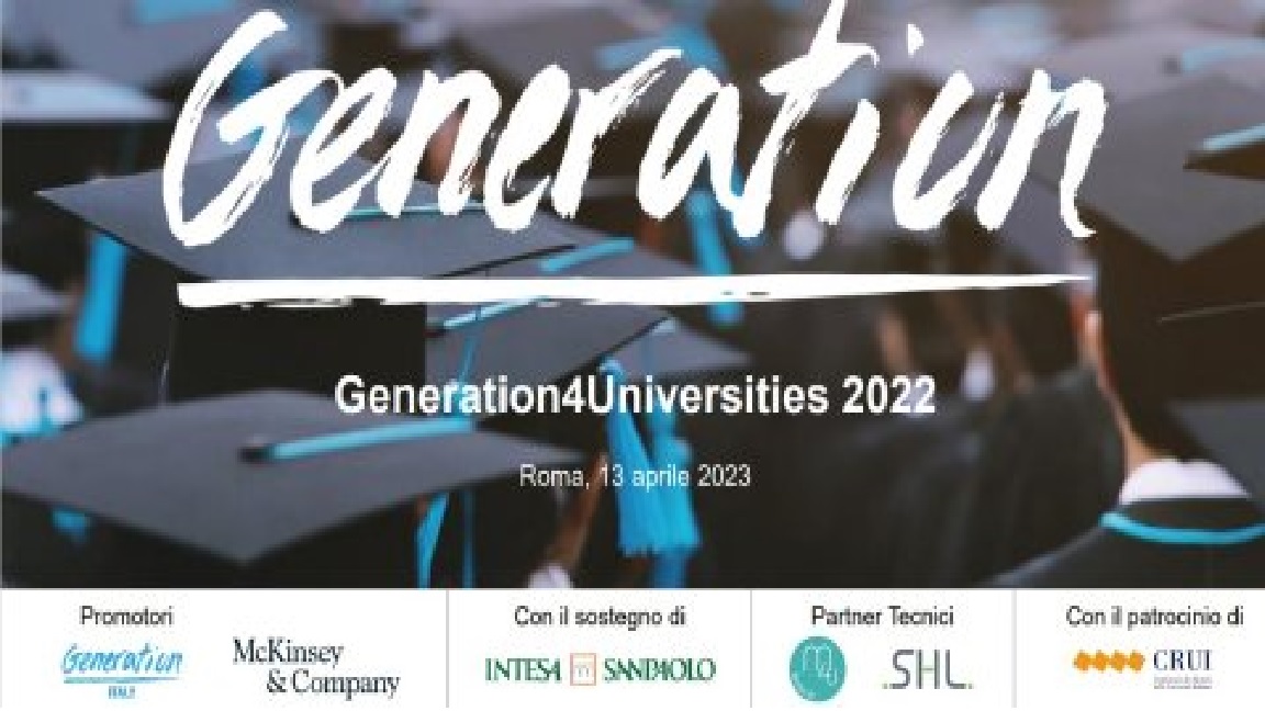 Saranno aperte fino al 2 maggio le iscrizioni alla nuova edizione del programma di accelerazione verso il mondo del lavoro “Generation4Universities”, promosso dalla Fondazione Generation Italy con il sostegno ed il patrocinio, fra gli altri, della CRUI. La nuova classe per il 2023 sarà formata per confermare la volontà di puntare sui giovani (all’ultimo anno del percorso magistrale o neolaureati), offrendo loro 100 posti all’interno di un percorso che prevede formazione esperienziale, mentorship individuale e seminari professionalizzanti con l’ausilio di un vasto network di aziende partner che metteranno in palio gli stage agli studenti sulla base dei profili richiesti. In continuità con le edizioni precedenti, gli indirizzi di studio di provenienza degli studenti saranno: Ingegneria, Economia, Lettere, Filosofia e Lingue.
