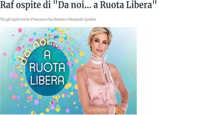 Saranno Raf, Francesco Facchinetti e Pierpaolo Spollon alcuni degli ospiti della prossima puntata di “Da noi… a Ruota Libera”, il programma realizzato dalla direzione Intrattenimento Day Time in collaborazione con Endemol Shine Italy, che è iniziato in onda domenica 26 maggio alle 17.20 su Rai 1.