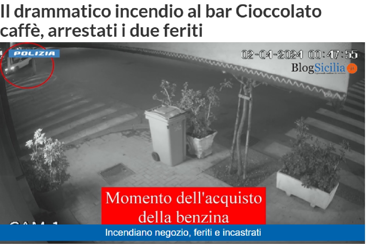 Leone, viene ripreso quella notte mentre acquista un consistente quantitativo di benzina presso un rifornimento nei pressi della propria abitazione. Le immagini poi mostrano l’incontro con Russo ed insieme si spostano verso il luogo teatro dell’incendio, appiccato utilizzando alcune bottigliette molotov artigianali. Ma l’esplosione è di potenza maggiore del previsto, tale da comportare il ferimento degli stessi indagati oltre a compromettere la stabilità dell’edificio, distruggere gli arredi e mandare in frantumi le vetrate.
