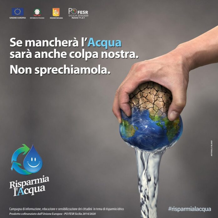“Se mancherà l’Acqua sarà anche colpa nostra…, non sprechiamola”. Con l’hashtag #risparmialacqua, parte la campagna di informazione, educazione e sensibilizzazione dei cittadini – stimolando la loro partecipazione attiva e le comunità locali – in tema di risparmio idrico, programmi di tutela ambientale, che durerà 4 mesi e coinvolgerà le nove province siciliane con iniziative itineranti. E’ un progetto voluto dalla Regione Siciliana e co-finanziato dall’Unione Europea con fondi Po Fesr 2014/2020. Un utilizzo inadeguato delle risorse idriche compromette non solo gli equilibri ecologici globali, ma anche la qualità della vita dell’uomo.