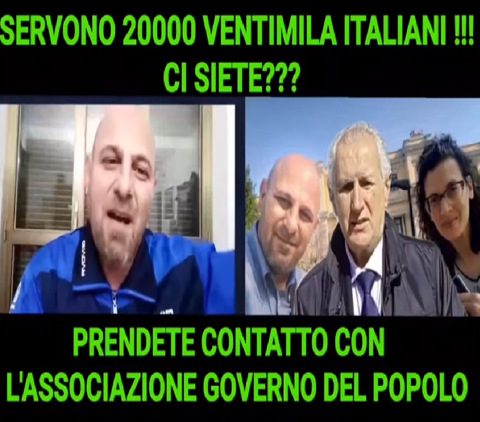 Servono 20.000 (Ventimila)…, italiani: “Ci siete?”. Lo ha pubblicato oggi 22 gennaio 2023 sul suo canale… di www.youtube.com e sui suoi spazi di Facebook, Francesco Carbone, il presidente dell’Associazione di promozione sociale ‘Governo del Popolo’ costituita in Provincia di Palermo nel luglio del 2018.