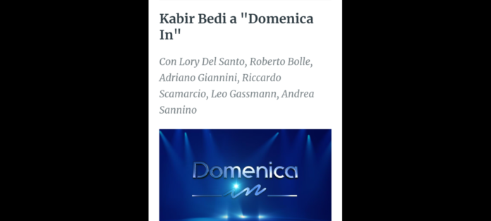 Si è aperta con un’intervista di Mara Venier all’attore Kabir Bedi, il celebre Sandokan della serie tv degli anni ’70 diretta da Sergio Sollima, la puntata di “Domenica In” del 28 aprile che è iniziata in onda alle 14.00 su Rai1 e durerà fino alle 17.10.