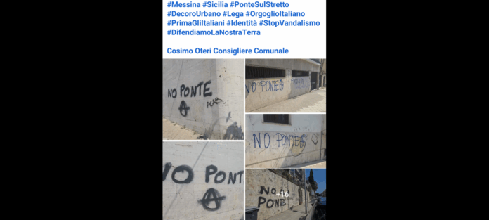 “Silenzio assordante: Quando i muri di palazzi storici, sia pubblici che privati, sono stati imbrattati da delinquenti che manifestavano contro la realizzazione del Ponte, non ho visto alcun esponente del PD alzare la voce o mostrare solidarietà verso la città e i suoi cittadini… chi governa o aspira a governare dovrebbe sempre condannare atti di vandalismo, a prescindere da chi li compia e dal colore politico”. Oggi, lo scrive sulla sua omonima Pagina Facebook… ‘Cosimo Oteri’, il consigliere comunale della Lega al Comune di Messina.