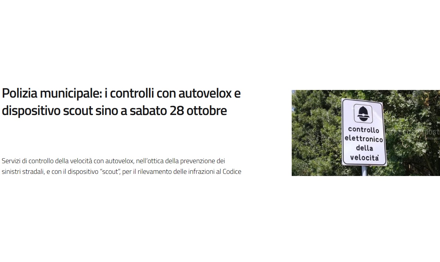 Il Comando del Corpo di Polizia municipale ha disposto la prosecuzione dei servizi di controllo della velocità con autovelox, nell’ottica della prevenzione dei sinistri stradali, e con il dispositivo “scout”, per il rilevamento delle infrazioni al Codice della Strada in materia di divieti di sosta.