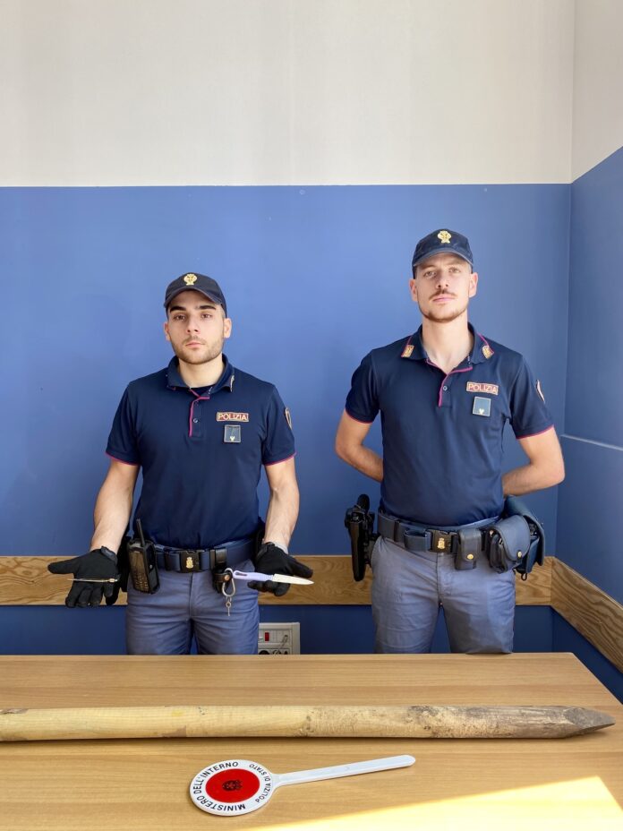 All’arrivo degli operatori, l’uomo brandiva il grosso pezzo di legno generando panico tra i presenti. Solo dopo reiterate pressioni lo gettava via tentando la fuga. Raggiunto dai Poliziotti, dopo energica resistenza e ripetuti tentativi di colpire gli operatori di Polizia, veniva infine bloccato. La perquisizione personale del quarantaquattrenne permetteva inoltre di rinvenire un tagliacarte in metallo e un coltello da cucina che lo stesso avrebbe cercato, inutilmente, di nascondere. L’uomo è stato, pertanto, arrestato per i reati di resistenza e lesioni a pubblico ufficiale, e sottoposto, su disposizione dell’Autorità Giudiziaria, agli arresti domiciliari. Lo stesso è stato altresì denunciato per i reati di minacce e porto di oggetti atti ad offendere.