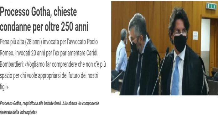 Sono richieste pesantissime quelle effettuate dal procuratore aggiunto di Reggio Calabria, Giuseppe Lombardo, nel processo “Gotha”, che si sta celebrando con rito ordinario davanti al tribunale di Reggio Calabria. Una richiesta molto dura quella effettuata nei confronti di Paolo Romeo, 28 anni, ritenuto al vertice della cupola massonico-mafiosa che ha governato le sorti della città insieme a Giorgio De Stefano. Nei confronti dell’ex senatore Antonio Caridi, la richiesta di condanna è stata pari a 20 anni, mentre per l’ex sottosegretario regionale, Alberto Sarra, l’invocazione è stata pure di 20 anni. Numerose anche le assoluzioni richieste, però, segno che la Dda non ha avuto alcuna remora a rimarcare l’innocenza di alcuni imputati.