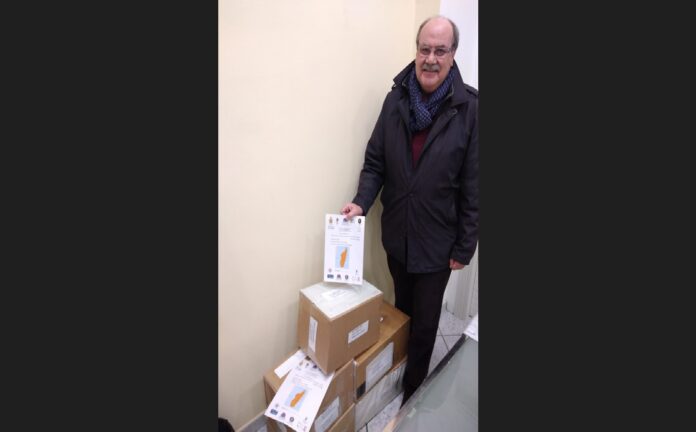 - nella foto il momento della spedizione con i cartoni contenenti il materiale raccolto.