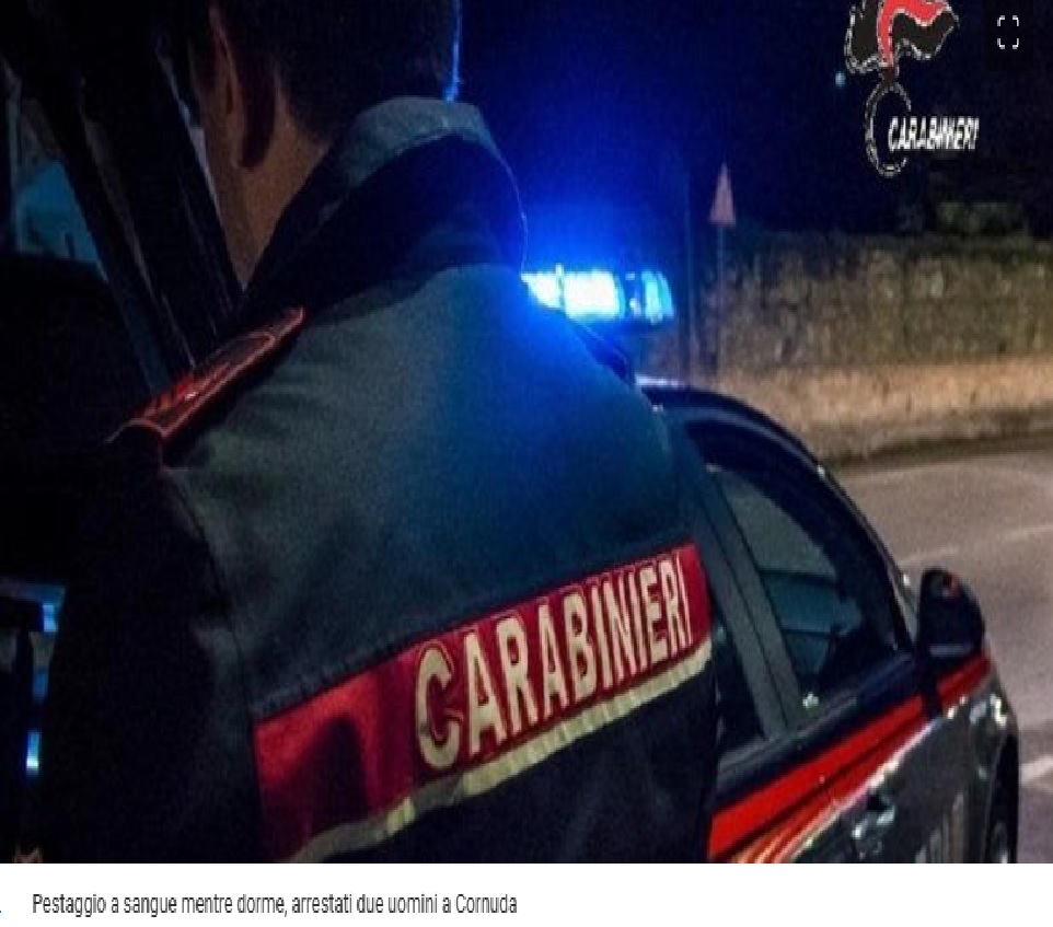 Spedizione punitiva in piena notte: un 41enne è stato pestato a sangue nel sonno…., i carabinieri della compagnia di Montebelluna hanno arrestato nella tarda serata di ieri, in flagranza di reato, a Cornuda, due soggetti italiani dimoranti nel Trevigiano, un 53enne ed un 36enne, per lesioni gravi e danneggiamento. I due, forzata la porta dell’abitazione di un 41enne loro conoscente, lo hanno sorpreso nel sonno e violentemente percosso con calci e pugni venendo bloccati dai militari dell’Arma, piombati tempestivamente sul posto allertati da altri residenti.