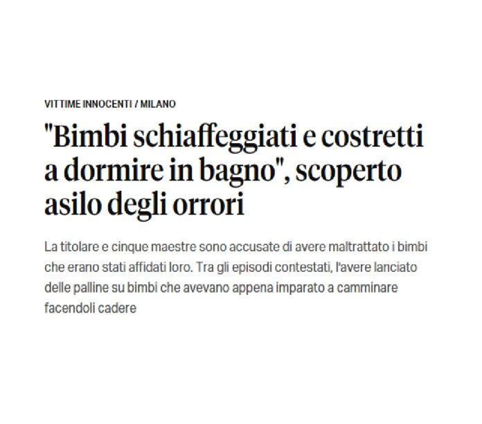 Spintoni, insulti, umiliazioni e un atteggiamento tutt’altro che protettivo nei confronti dei piccoli bambini: sei misure giudiziarie a carico della titolare di un asilo nido e di 5 maestre sono state emesse dal Tribunale di Milano a causa dei presunti metodi coercitivi e violenti esercitati nella struttura, che si trova nel Milanese, a Vanzago. Per loro è scattata la sospensione dalla professione per un anno e dell’obbligo di firma.