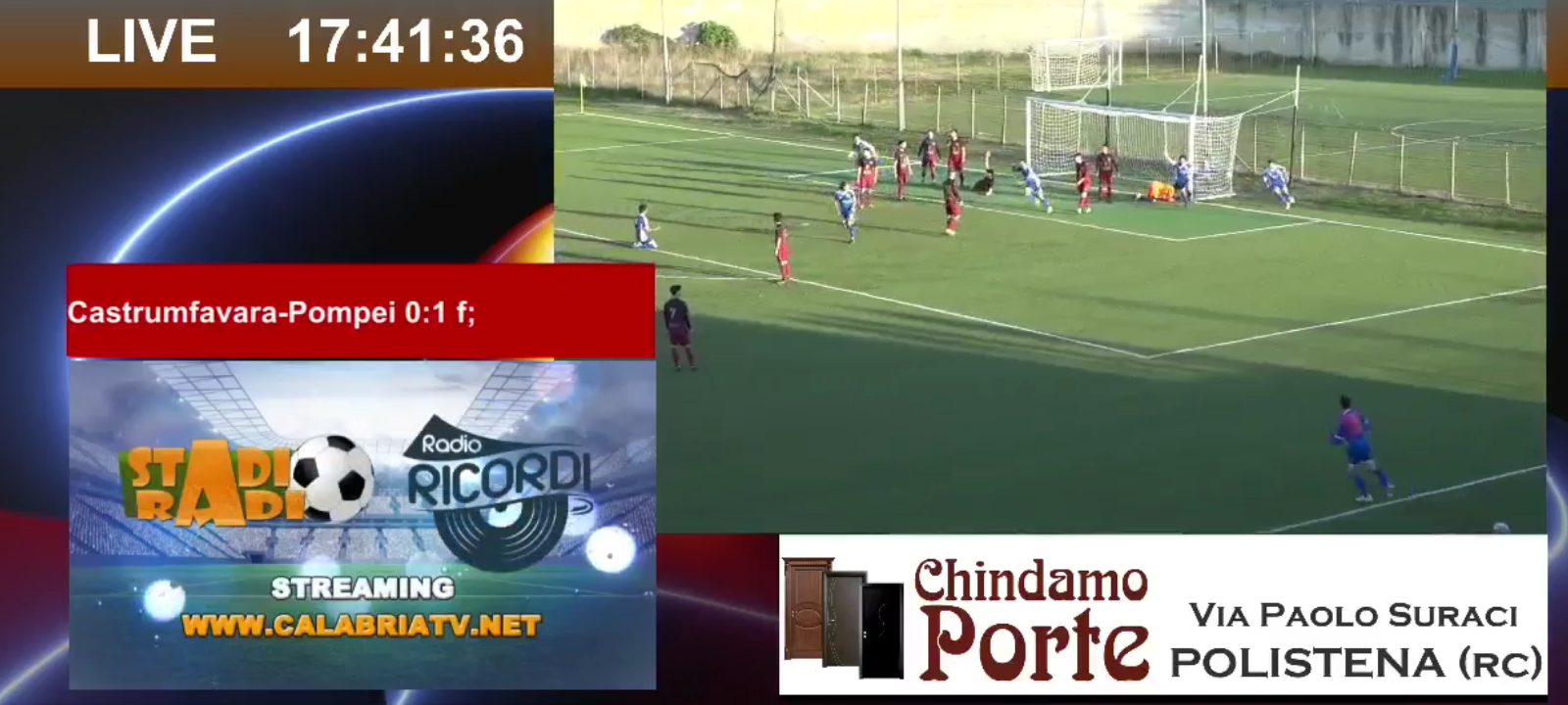 Le Gare dei Campionati di Calcio di… ‘Serie C, Serie D, Eccellenza, Promozione e Prima Categoria’… sono trasmesse in diretta su… ‘Radio Ricordi (F. M. 90.0 MHz), Radio Venere di Bovalino (F. M. 98.0 MHz) e sul Canale 13 del Digitale terrestre di Calabria Tv’.