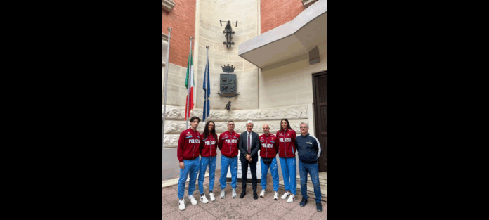 Stamattina il Questore di Messina Annino Gargano ha ricevuto i campioni nazionali di Taekewondo Fiamme Oro #Polizia di #Stato Giada Al Halwani, Natalia D’Angelo e Antonio Gerrone, accompagnati dall’allenatore e responsabile del gruppo Alessandro Stozzo, dal tecnico della Sezione Giovanile di Brindisi Massimiliano Martina e dall’atleta e accompagnatore Francesco Martina.