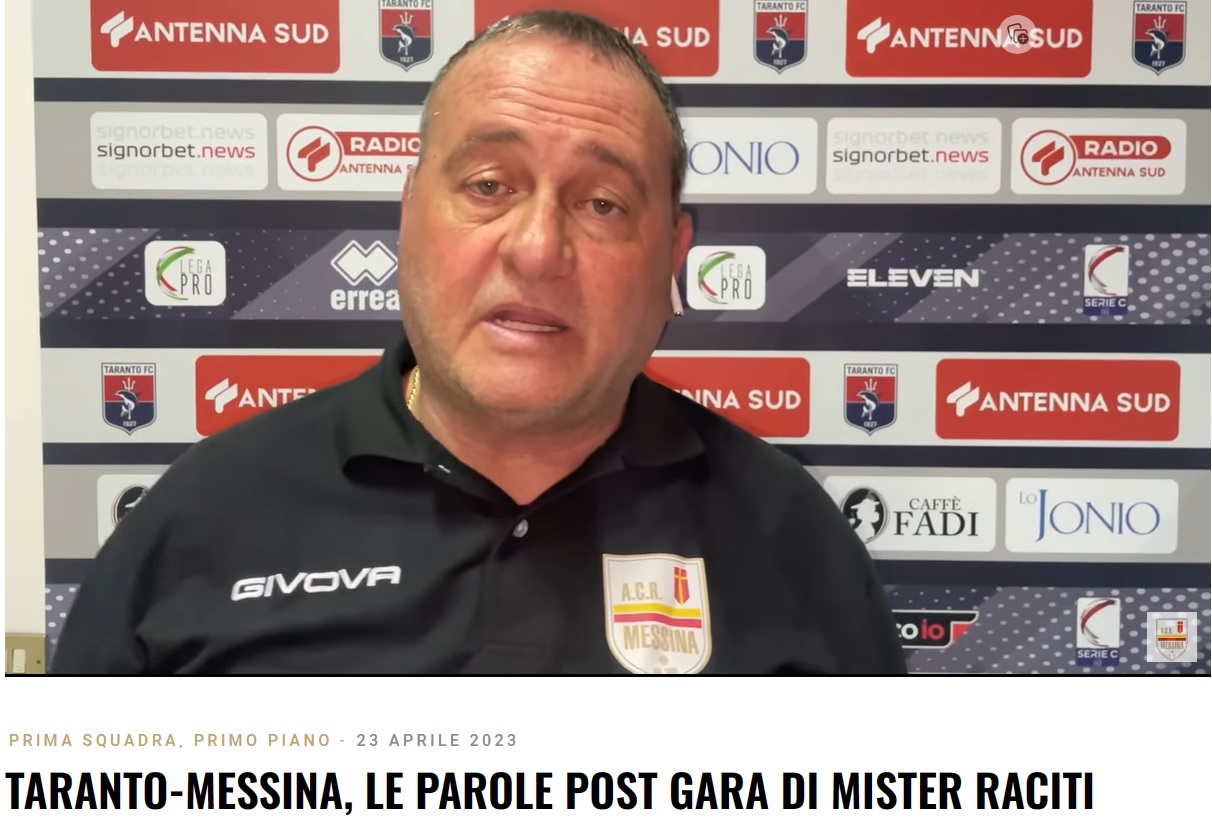 I Giocatori dell’Acr Messina dunque, se vorranno restare nella Terza categoria professionistica di Calcio, dovranno disputare i Play Out contro la Gelbison il 06 maggio ad Agropoli ed il 13 maggio in casa… e vincere o comunque trarre il massimo nelle due gare. Alla fine della gara…, in conferenza stampa, vi sono state le dichiarazioni dell’allenatore giallorosso Ezio Raciti.