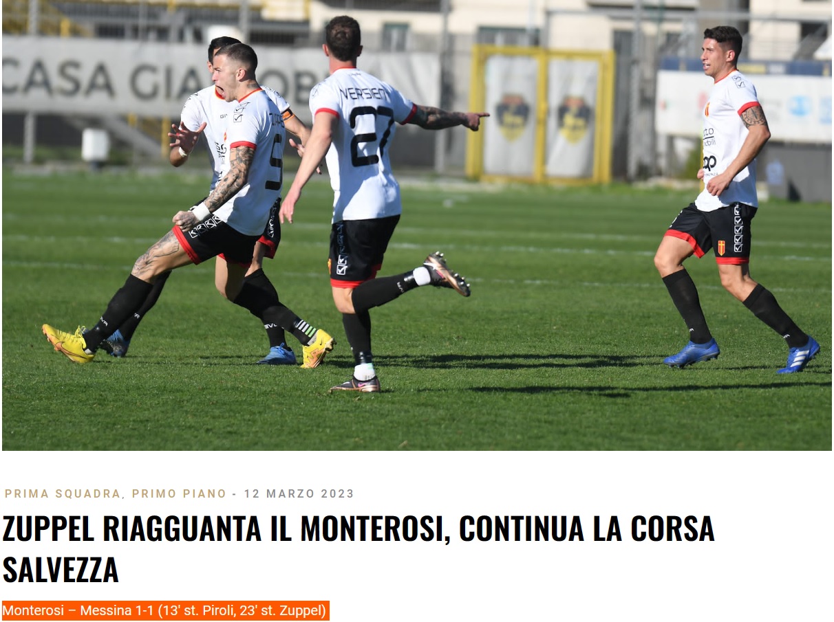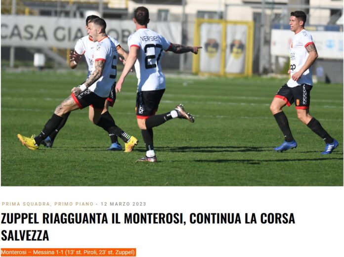 Termina in parità lo scontro salvezza tra Monterosi e Messina: dopo la sconfitta interna contro il Monopoli, i giallorossi non riescono ad andare oltre l’1-1 (13′ st. Piroli, 23′ st. Zuppel) in terra laziale. La squadra di mister Ezio Raciti tornerà in campo mercoledì nel turno infrasettimanale contro il Pescara, terza forza del campionato.