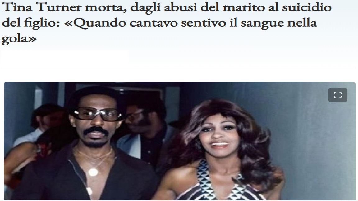 Tina Turner inizia a cantare a soli dieci anni nel coro della chiesa di Brownsville dopo il padre Richard è pastore. L’incontro con il marito risale al 1956, quando Tina ha solo 17 anni. Insieme debutteranno con il brano Boxtop: nel 1960 il matrimonio (poi invalidato, Ike era ancora sposato). Un legame infelice: Ike Turner era dipendente dalla cocaina e quella di Tina con lui fu una storia di abusi sia fisici che verbali. Nel 1976 il divorzio: si dice che la cantante dall’ex marito non volle nulla tranne la possibilità di tenere il suo cognome, con cui aveva già acquisito una certa notorietà grazie a brani come Proud Mary, River Deep, Mountain High e Nutbush City Limits. Ike «ha usato il mio naso come un punching ball talmente tante volte che potevo sentire il sapore del sangue che mi scivolava nella gola quando cantavo», dichiarò anni dopo.