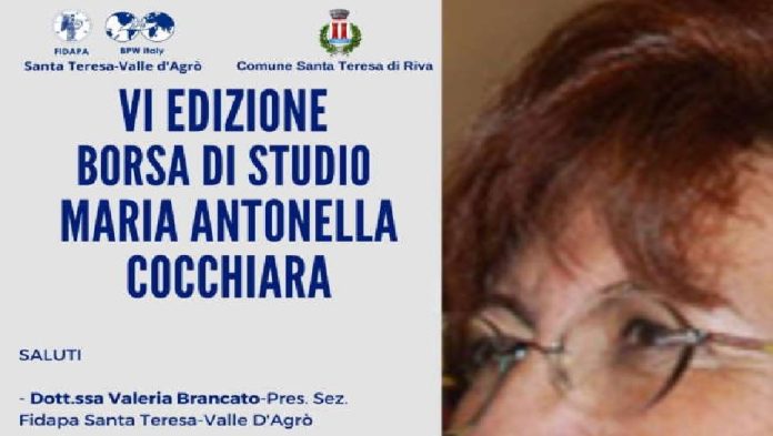 Torna l’appuntamento con la borsa di studio alla memoria della professoressa Maria Antonella Cocchiara, docente di Storia delle Istituzioni politiche e presidente del Comitato unico di Garanzia e del Comitato per le Pari Opportunità dell’Università di Messina, scomparsa prematuramente. La borsa di studio è giunta alla sesta edizione. Un gesto concreto con cui la Fidapa BPW ITALY Santa Teresa Valle d’Agrò intende conservare il ricordo della docente e promuovere la cultura finanziando il primo anno di studi nelle scuole secondarie di secondo grado a quelle studentesse che si sono particolarmente distinte per impegno, correttezza e spiccate doti scolastiche ed umane.